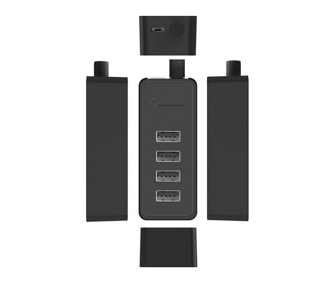 Hub Orico W5P-U2-030 4x USB-A 2.0 + microUSB 5V 30 cm - fekete
