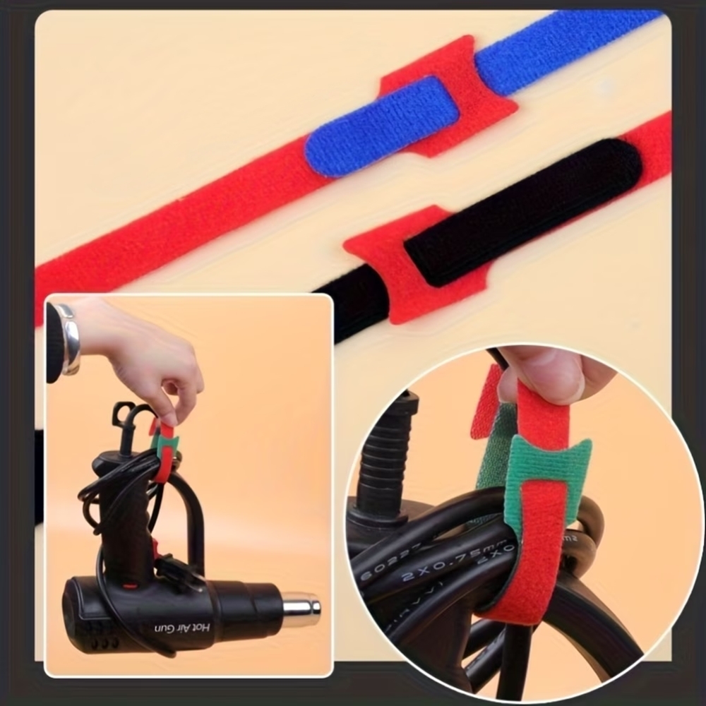 Praktikus vegyes színű tépőzáras szalag a kábelek rendezéséhez és rendszerezéséhez. Ideális számítógép-, hálózati- és töltőkábelek, valamint headset kábelek rendezésére. De nem csak az irodában, vagy az informatikai eszközök körül praktikus. A hálószobában, a nappaliban de még a konyhában is megtalálhatja helyét ennek a rendezőnek. Sokoldalúan hasznosítható. A termék teljes hossza 15 cm.