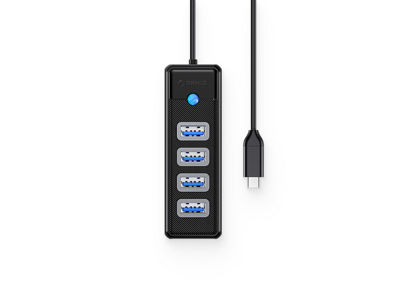 Orico PW4U-C3 USB-C / 4x USB-A 3.0 elosztó - Fekete