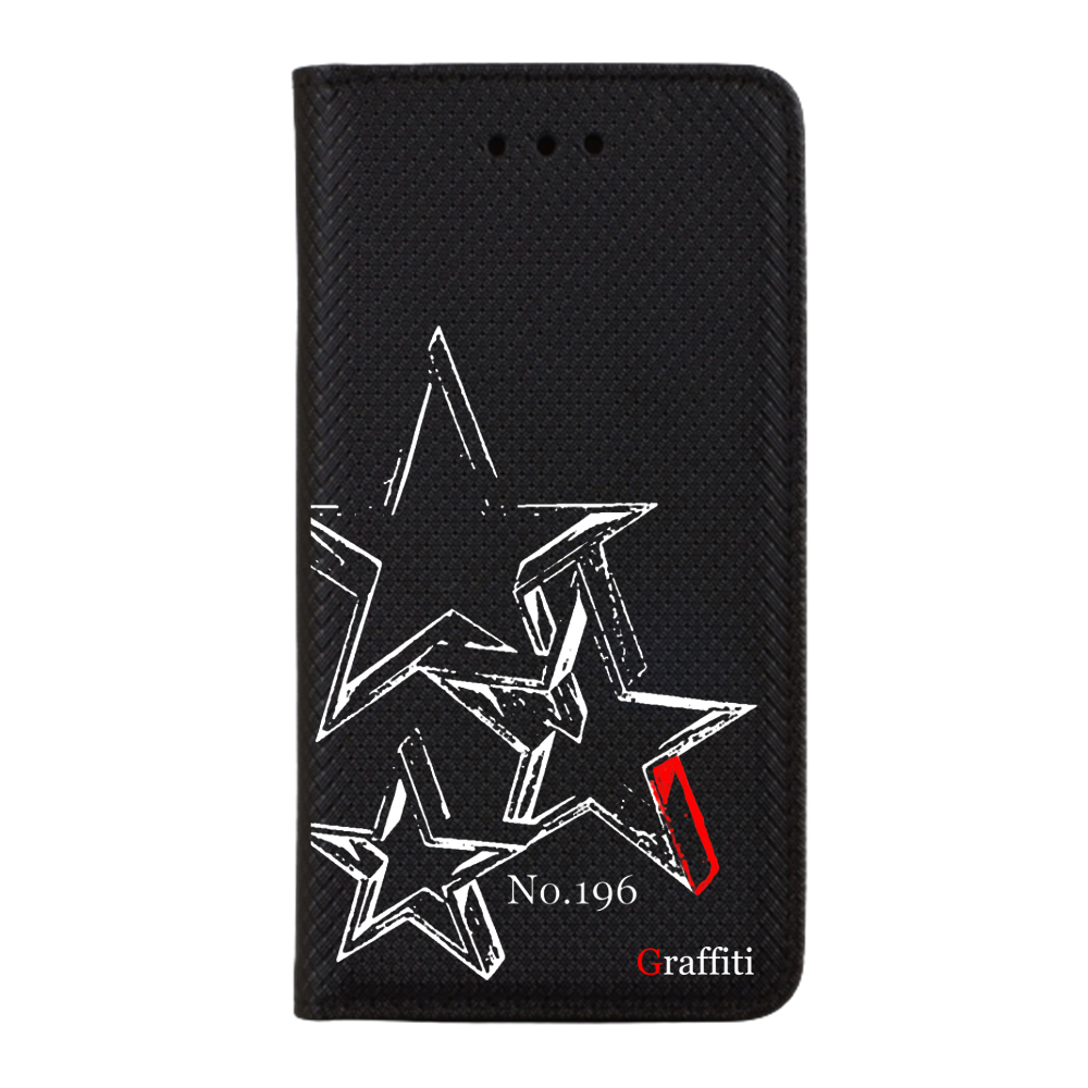 Eredeti Graffiti Kitámasztható könyvtok, pénz- és bankkártyatartóval. Fekete könyvtok egyedi sorszámozott mintával a Graffiti-Brand által tervezett black&white stílusban, mely tökéletesen illeszkedik a készülék csatlakozóihoz, gombjaihoz.