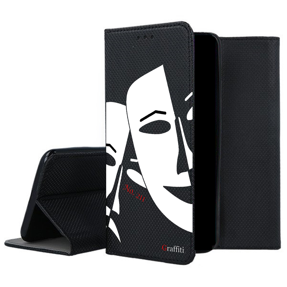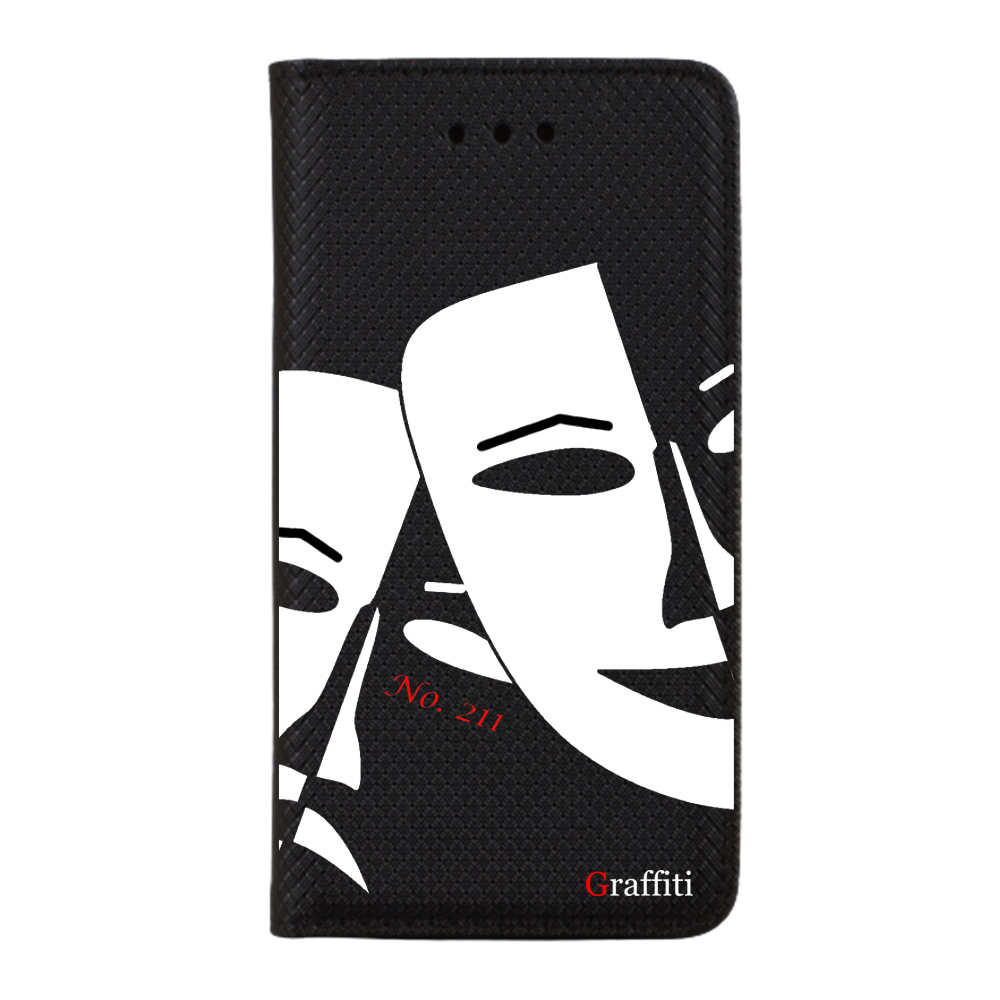 Eredeti Graffiti Kitámasztható könyvtok, pénz- és bankkártyatartóval. Fekete könyvtok egyedi sorszámozott mintával a Graffiti-Brand által tervezett black&white stílusban, mely tökéletesen illeszkedik a készülék csatlakozóihoz, gombjaihoz.