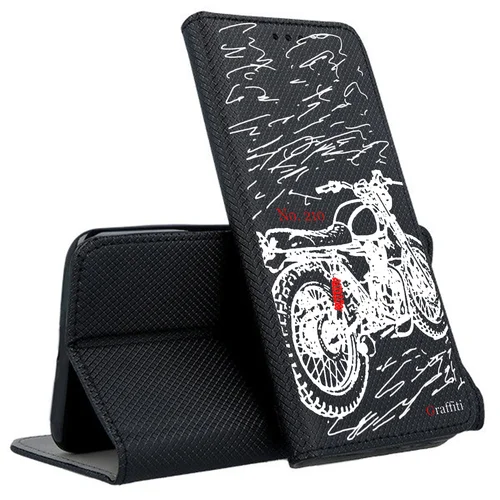 Eredeti Graffiti Kitámasztható könyvtok, pénz- és bankkártyatartóval. Fekete könyvtok egyedi sorszámozott mintával a Graffiti-Brand által tervezett black&white stílusban, mely tökéletesen illeszkedik a készülék csatlakozóihoz, gombjaihoz.