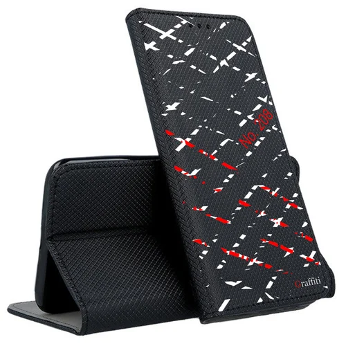 Eredeti Graffiti Kitámasztható könyvtok, pénz- és bankkártyatartóval. Fekete könyvtok egyedi sorszámozott mintával a Graffiti-Brand által tervezett black&white stílusban, mely tökéletesen illeszkedik a készülék csatlakozóihoz, gombjaihoz.