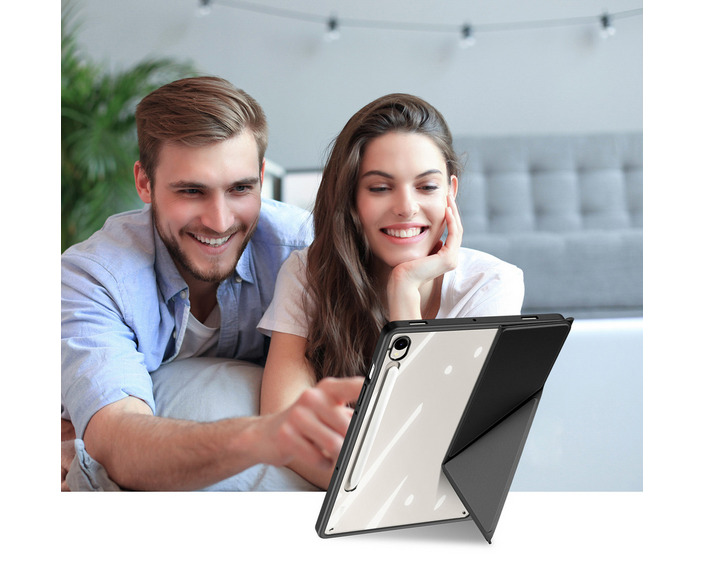 A Dux Ducis tablet tok nem csupán védelmet nyújt, hanem számos más előnnyel is rendelkezik. A tok kiemelkedő minőségű anyagok felhasználásával készült, minden részletre figyelve. A belső részben található ceruza tartó rekesz például nagyban megkönnyíti a ceruza használatát, mivel mindig kéznél van. A Dux Ducis praktikus tokja számos kényelmi funkciót kínál Önnek. Kialakítása lehetővé teszi, hogy egy egyszerű könyvtokból állvánnyá hajtogathassa. Ez ideális böngészéshez az interneten vagy akár filmnézéshez is. A masszív tok megvédi készülékét a különféle sérülésektől, míg a megemelt élek esés esetén csillapítják az ütközés erejét.