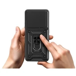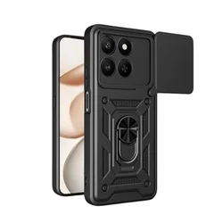 Telefontok Honor X7d - Camshield - fekete szilikon tok, kitámasztó ujjgyűrűvel, csúsztatható kameravédővel