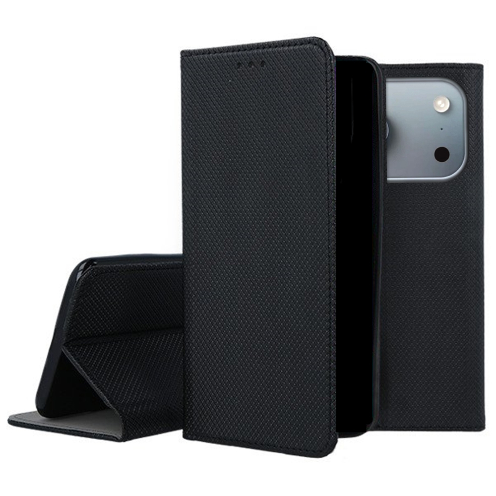 Telefontok iPhone 17 Pro Max - fekete mágneses átlátszó szilikon keretes könyvtok