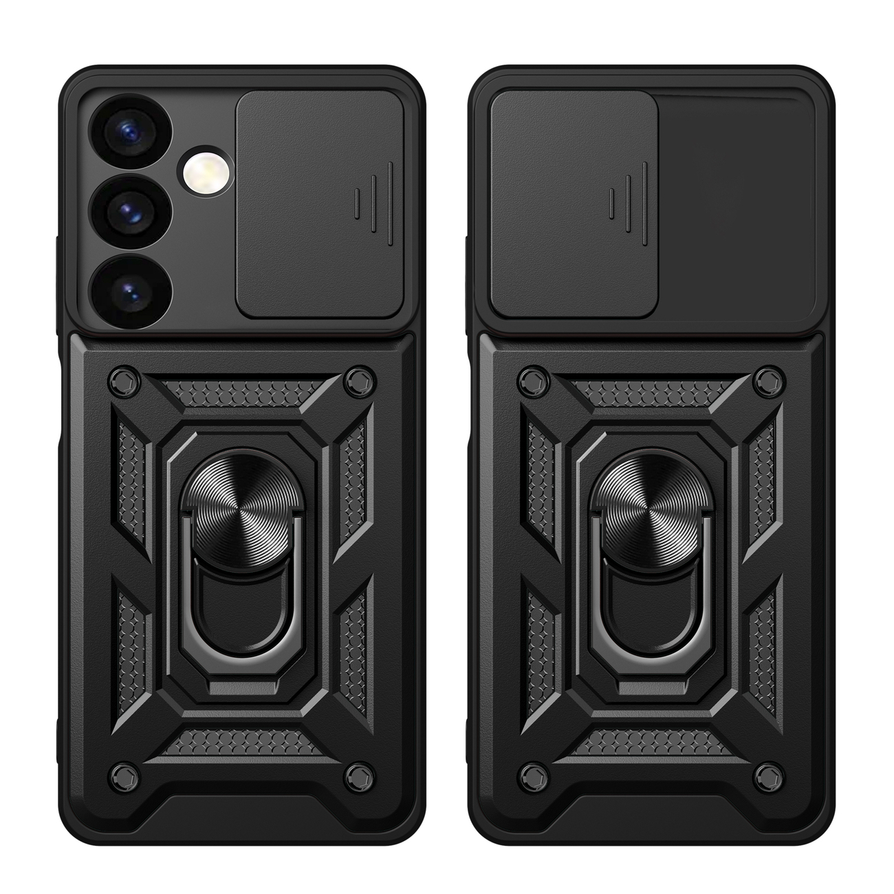 Telefontok Samsung Galaxy S26+ Plus - Camshield - fekete szilikon tok, kitámasztó ujjgyűrűvel, csúsztatható kameravédővel