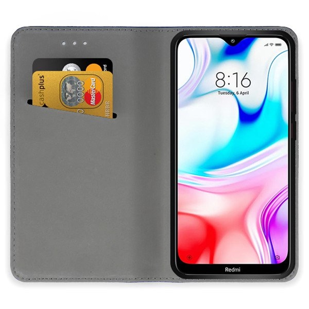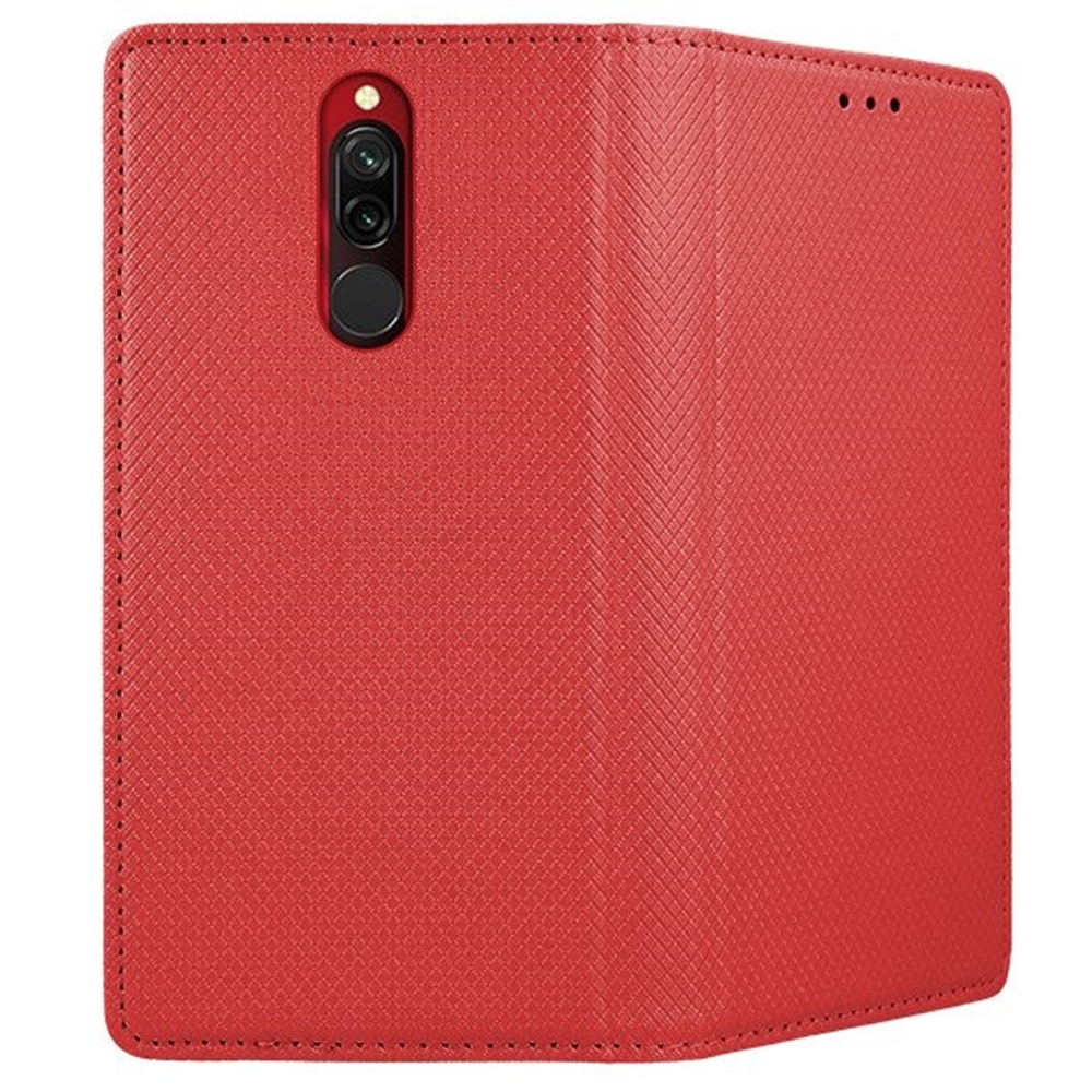 Xiaomi Redmi 8 Telefontok - piros mágneses átlátszó szilikon keretes könyvtok