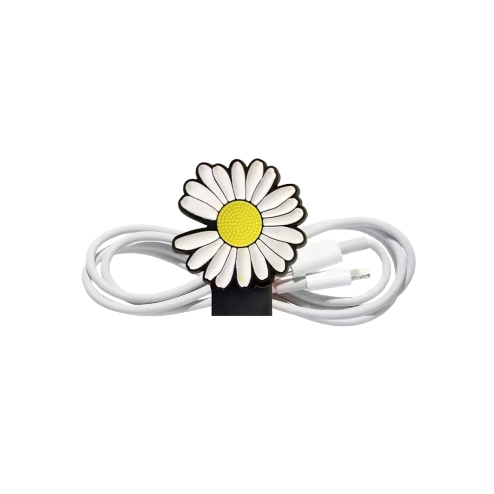 Univerzális Virág figurás kábelrendező, fekete/fehér szilikon, patentos