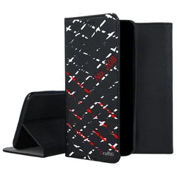 Eredeti Graffiti Kitámasztható könyvtok, pénz- és bankkártyatartóval. Fekete könyvtok egyedi sorszámozott mintával a Graffiti-Brand által tervezett black&white stílusban, mely tökéletesen illeszkedik a készülék csatlakozóihoz, gombjaihoz.